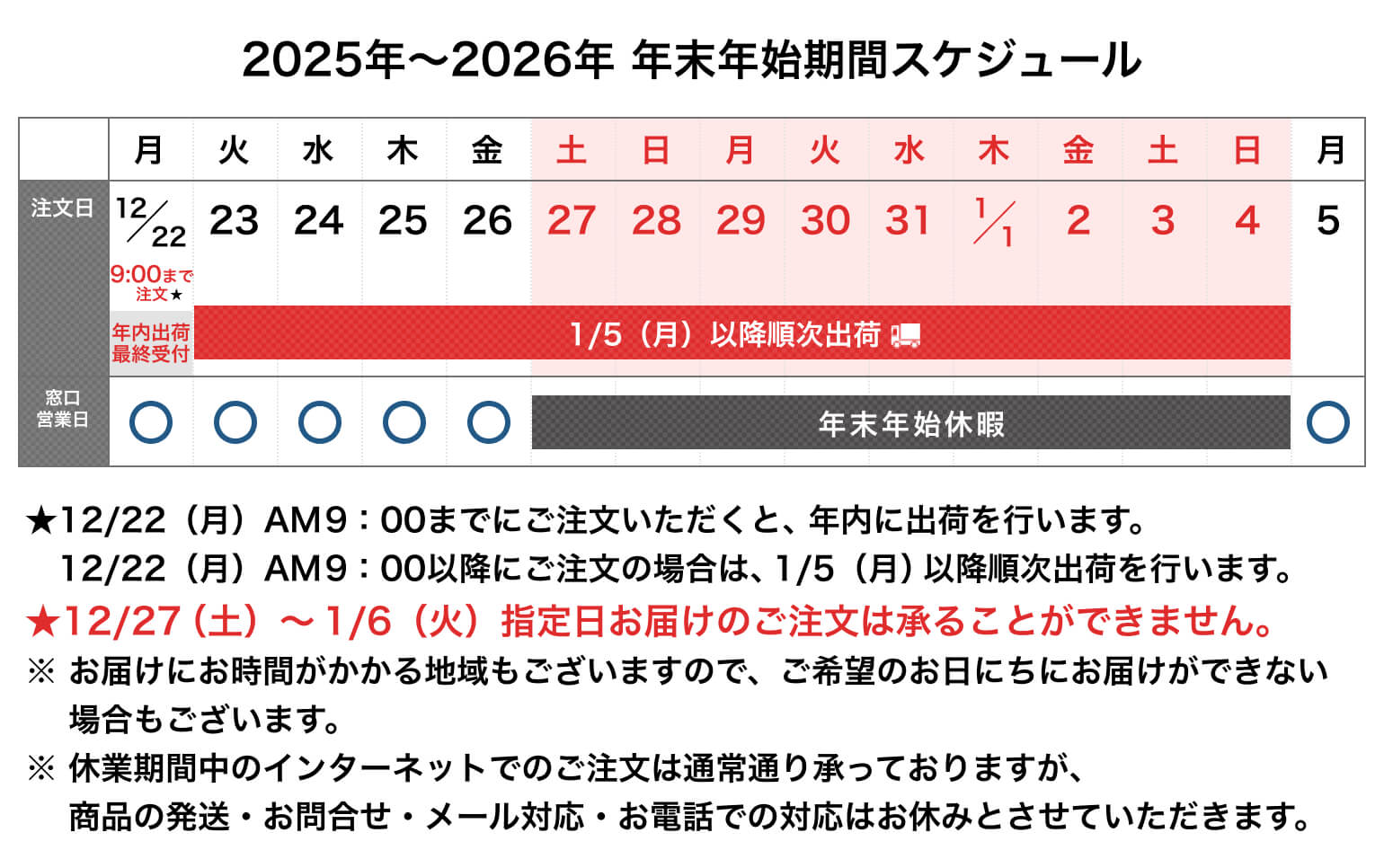年末年始の営業のお知らせ