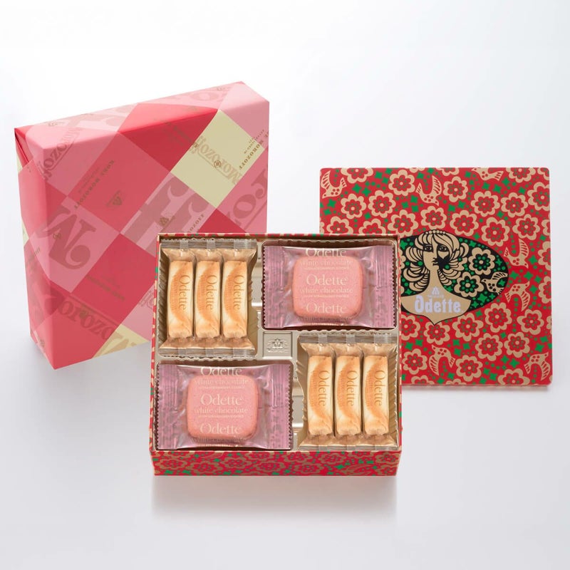 ほんのり酸味のあるあまおういちごのクッキーにホワイトチョコレートをサンドしたクッキーと、甘いバニラの香りと豊かなバターの風味を楽しめる、さっくりと軽やかな食感のロールタイプのクッキーの詰合せ。