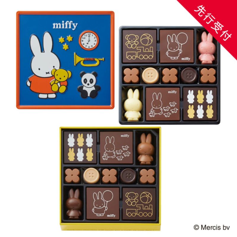 ミッフィーをデザインした楽しさいっぱいの缶に、かわいいイラストやキュートな形のプレーンチョコレートを、にぎやかに詰め合わせて。この季節だけの特別なパッケージは後使いのうれしさもとびきりです。【お酒不使用】