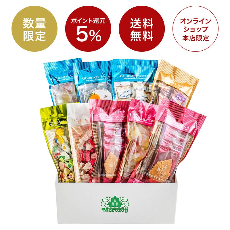 モロゾフオンラインショップ本店をご覧の皆様だけに、春の特別セットを限定販売!人気の「ファヤージュ(あまおういちご)」や季節限定のゼリーや焼き菓子に加えて、定番商品も詰め合わせたボリューム感ある一品。さらに、当商品をご購入いただいた会員の方には、特別にお買い上げ商品価格(税抜)の5%をポイント還元いたします!この機会にモロゾフおすすめのスイーツをぜひお楽しみください。※ポイント還元率アップは当商品のみ対象となります。※ポイント還元は、会員登録後、ログイン状態でのお買い物が対象となります。