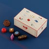 ときめきあふれるアステルの世界を、ぎゅっと詰め込んで。上段には、アステルが編んだクロッシェの飾り(ミルク、ホワイト、カシス)と、アステルの国に伝わる“星のステッチ”を表現したチョコレート(グリューワイン、カルヴァドス、バニラ、ホワイト)が入っています。下段には、星をまとったりんご(アップルキャラメル)や妖精の髪飾り(エルダーフラワー)、おだやかなカモミール(アップルカモミール)などの味わいをぎゅっと詰め合わせました。