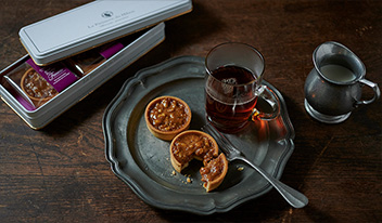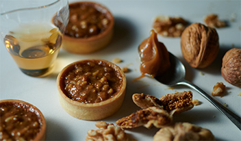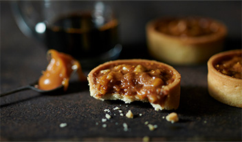 キャラメルフィリングを、サクサク食感のタルトにのせて